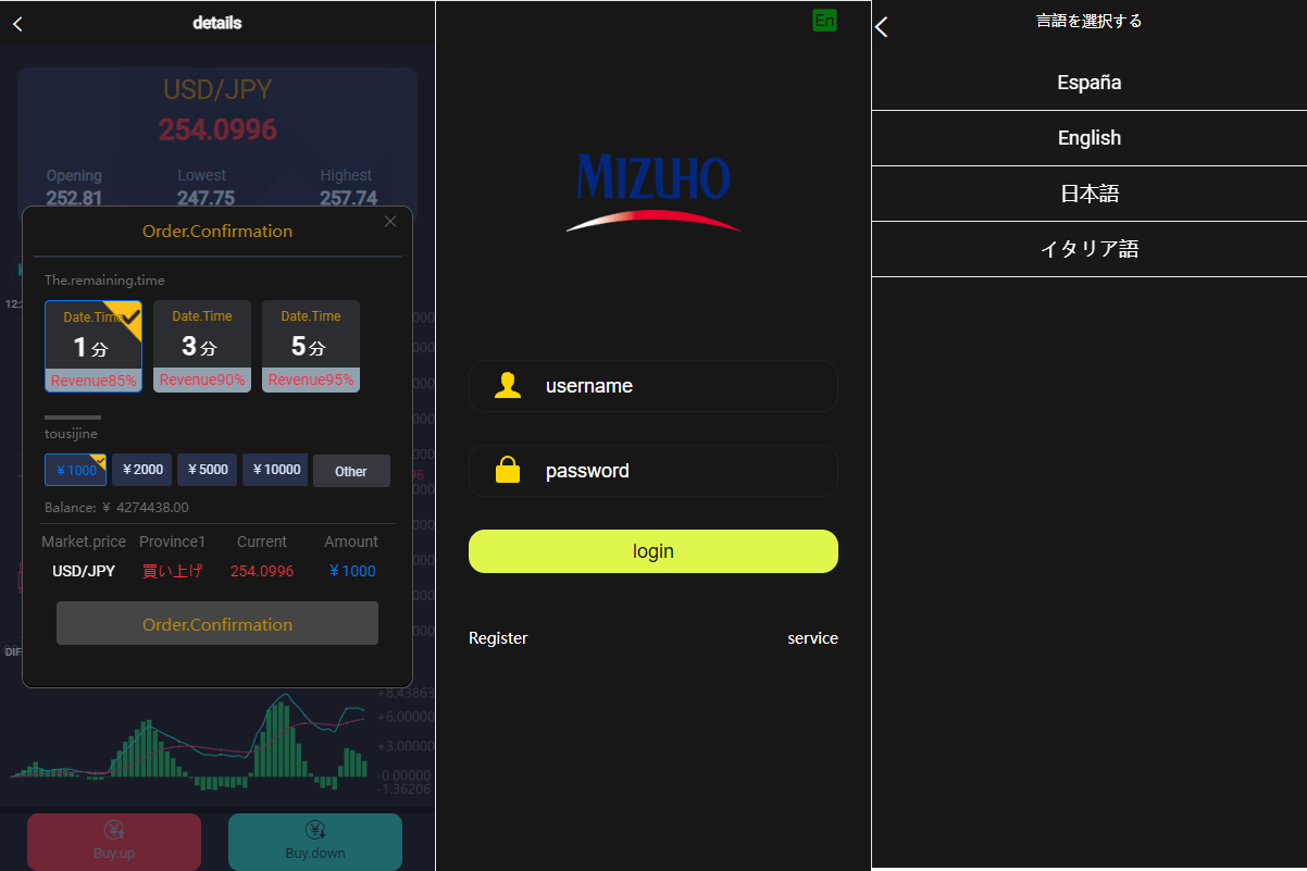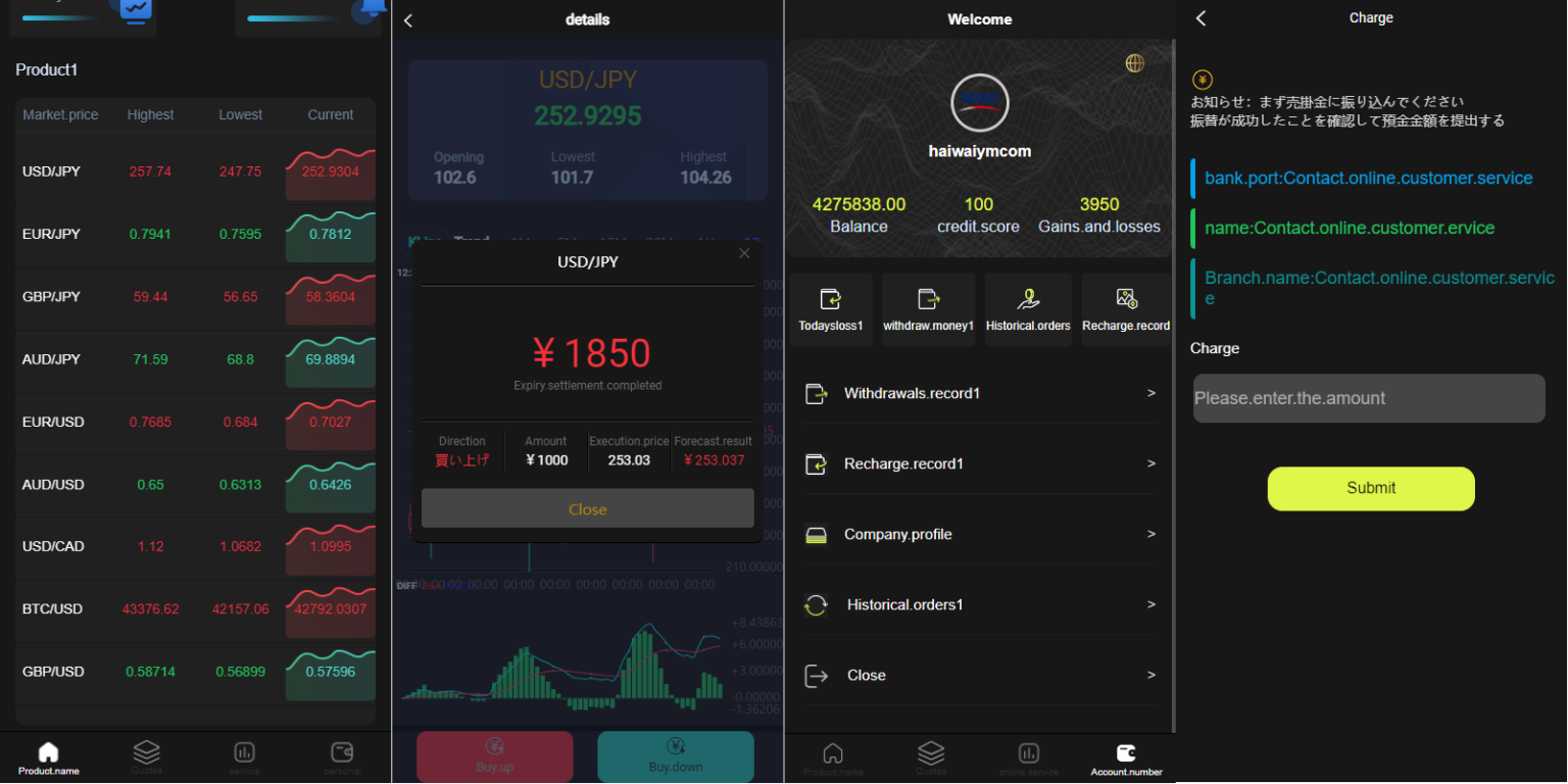目前多种语言:英文、日语、西班牙语 系统默认是运营日本的,产品是虚拟币改的外汇名称,不是真实数据